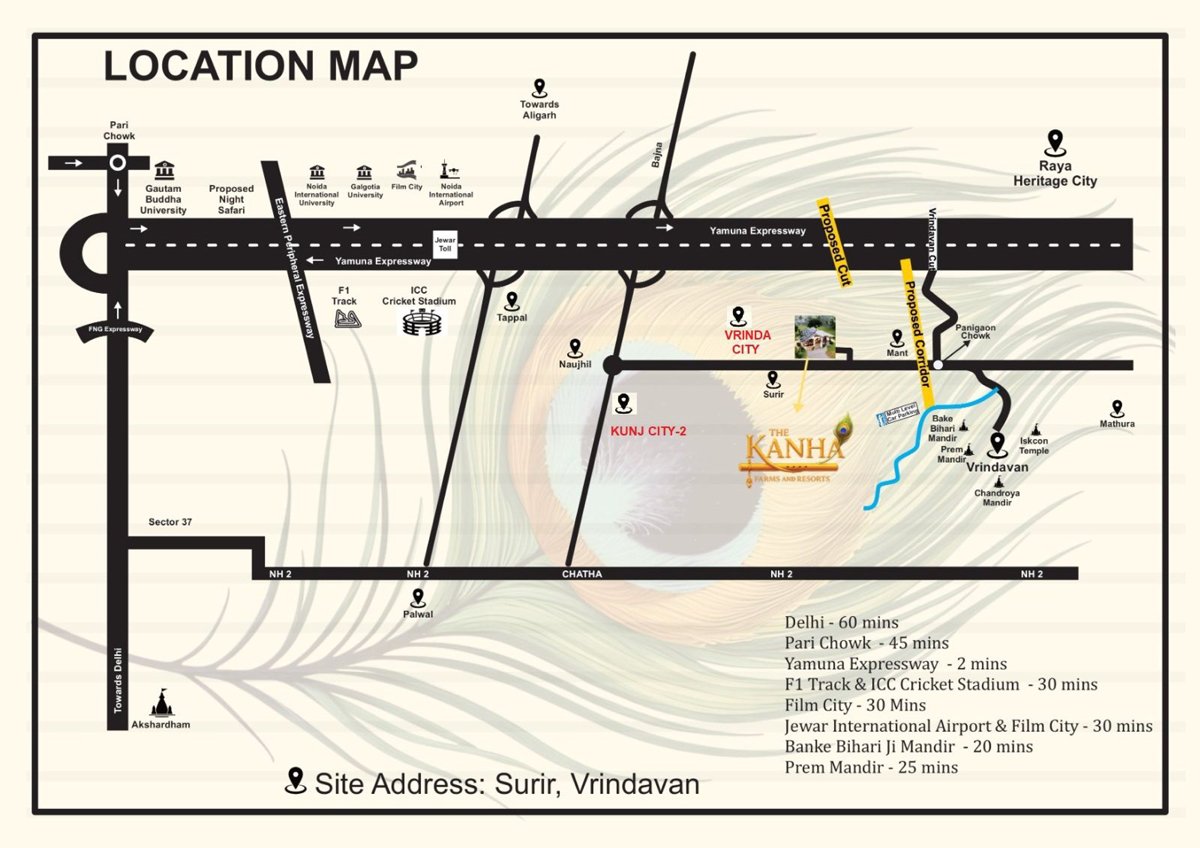 A Luxury Retreat Near Jewar Airport & Film City: Discover Kanha Farms & Resorts — a premium development offering resort-style living with the charm of nature and the elegance of modern luxury. Strategically located near Jewar International Airport and the upcoming Film City, this project promises high investment potential, serene surroundings, and world-class amenities.
